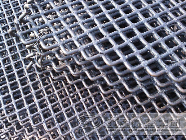 固定格篩的篩體用粗大的鋼材制成方形篩孔,篩孔的大小可根據(jù)具體情況自行確定。水平固定在粗碎礦倉(cāng)的頂上。