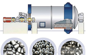 球磨機(jī)工作時(shí)主要是利用研磨體在磨倉內(nèi)隨著筒體的回轉(zhuǎn)而對物料進(jìn)行撞擊,致使物料被研磨成粉。球磨機(jī)的筒體為長形圓筒,筒內(nèi)裝有研磨體,研磨體一般為鋼制圓球,并按不同直徑和一定比例裝入筒中,研磨體也可用鋼段。根據(jù)研磨物料的粒度加以選擇,物料由球磨機(jī)進(jìn)料端空心軸裝入筒體內(nèi),當(dāng)球磨機(jī)筒體轉(zhuǎn)動時(shí)候,研磨體由于慣性和離心力作用,摩擦力的作用,使它附在筒體襯板上被筒體帶走,當(dāng)被帶到一定的高度時(shí)候,由于其本身的重力作用而被拋落,下落的研磨體像拋射體一樣將筒體內(nèi)的物料給擊碎。